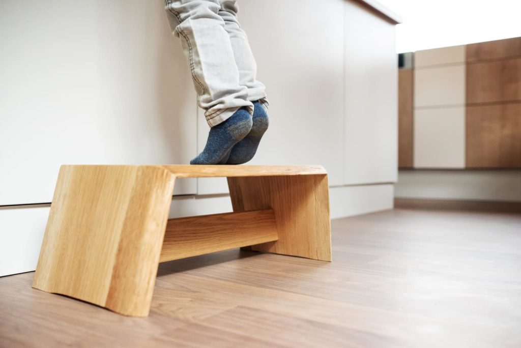Für den Sohn des Tischlermeisters war das an sich kein Problem. Er hatte mit dem Umfallen ja erreicht, was er wollte. Dem Tischlermeister kam aber eine Idee in den Sinn. Wenn er einen neuen Hocker entwerfen würde, dürfte damit weder sein kleiner Sohn, noch der Hocker umfallen.