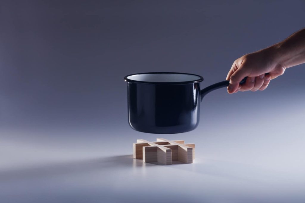Die entdeckten Holzstücke werden dabei durch eine Kreuzüberblattung verbunden und Magneten integriert. Durch die versteckten Magneten erhält #ashtag die praktische Funktion, dass der Untersetzer auf der Unterseite von metallenem Geschirr wie Kannen und Töpfen haften bleibt.