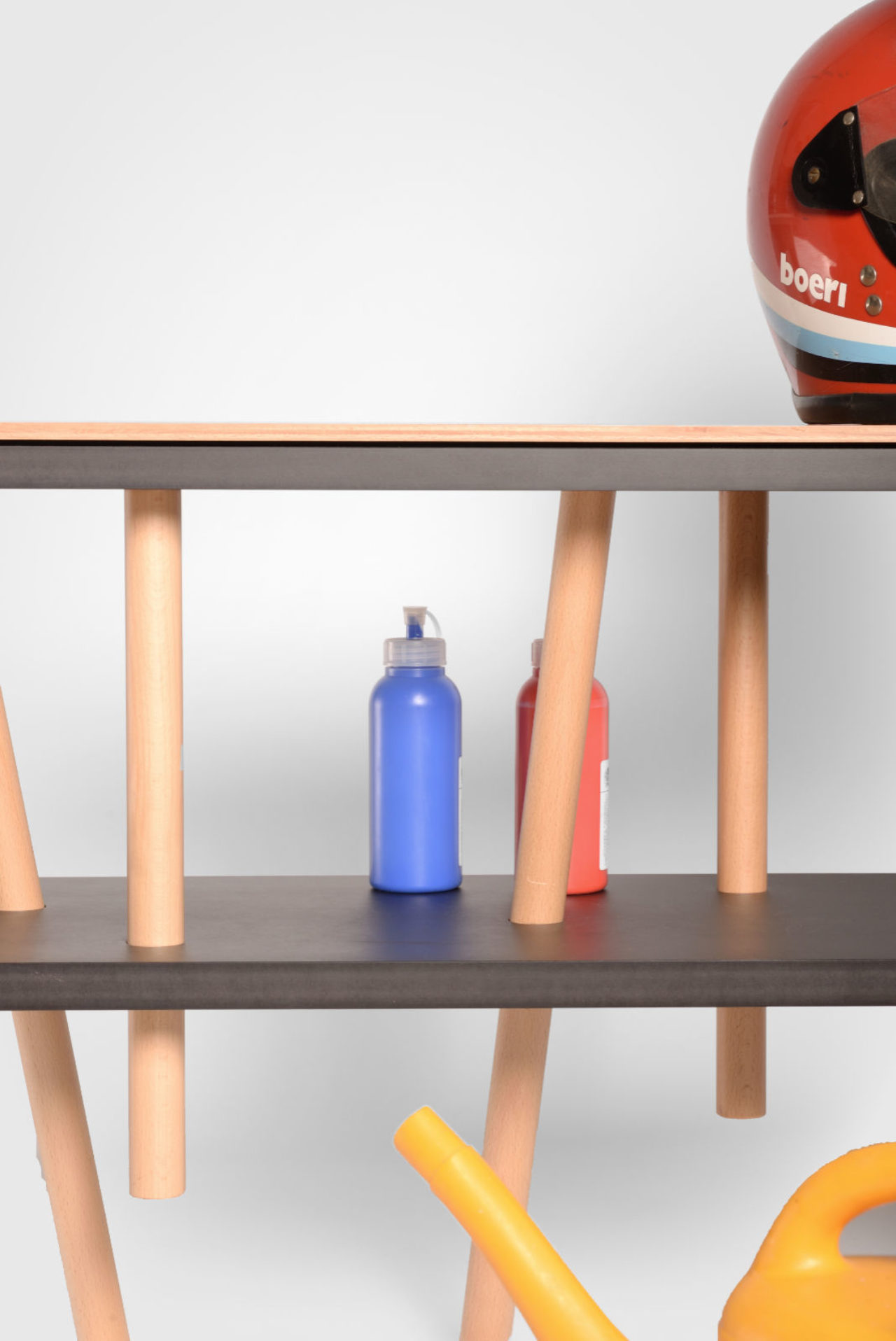 Das Grazer Design-Studio zweithaler greift für die Möbelserie Orto auf ein statisches Prinzip zurück: Holzstäbe werden windschief durch vorgebohrte Platten einfädelt und verkeilen sich zu einer stabilen Konstruktion. Es entsteht ein markantes – aber dennoch schlichtes – Regalsystem, das werkzeuglos aufgebaut werden kann.